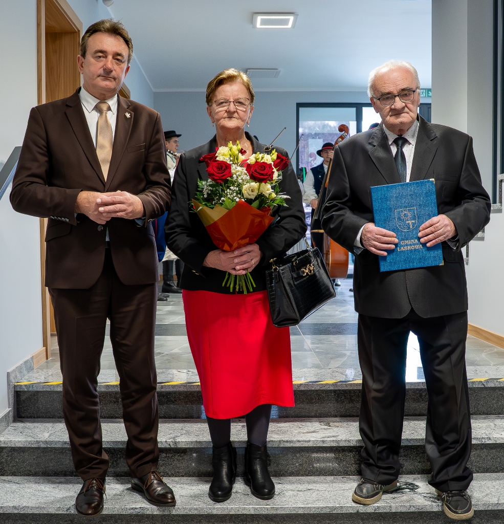 Ponadto w uroczystości wzięli udział przedstawiciele samorządu Gminy Laskowa Pani Bożena Chełmecka Przewodnicząca Rady Gminy Laskowa, Pan Piotr Stach Wójt Gminy Laskowa, Pan Jan Orzeł Sekretarz Gminy Laskowa, Pani Dorota Orzeł Skarbnik Gminy Laskowa, Pani Monika Bugajska z-ca Kierownika Urzędu Stanu Cywilnego.